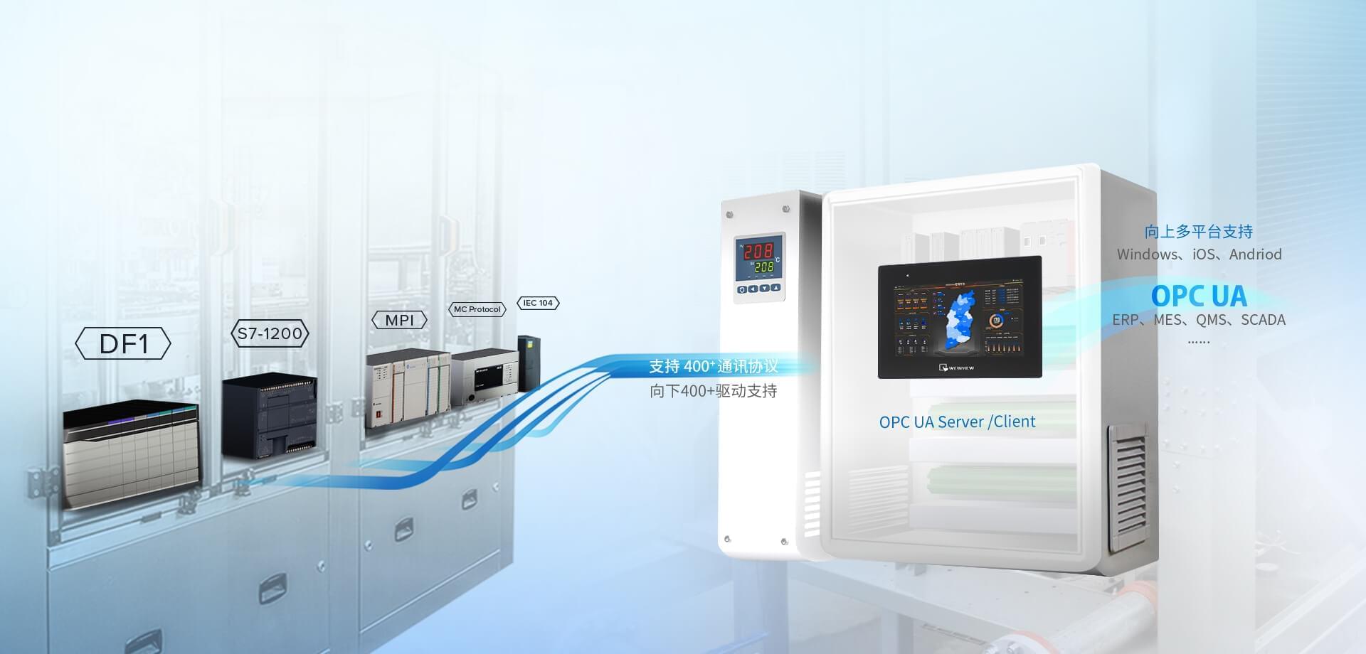 支持 400+ PLC 通訊協(xié)議,物聯(lián)網(wǎng)通訊協(xié)議及數(shù)據(jù)庫(kù)連接,能快速整合現(xiàn)場(chǎng)設(shè)備資料。